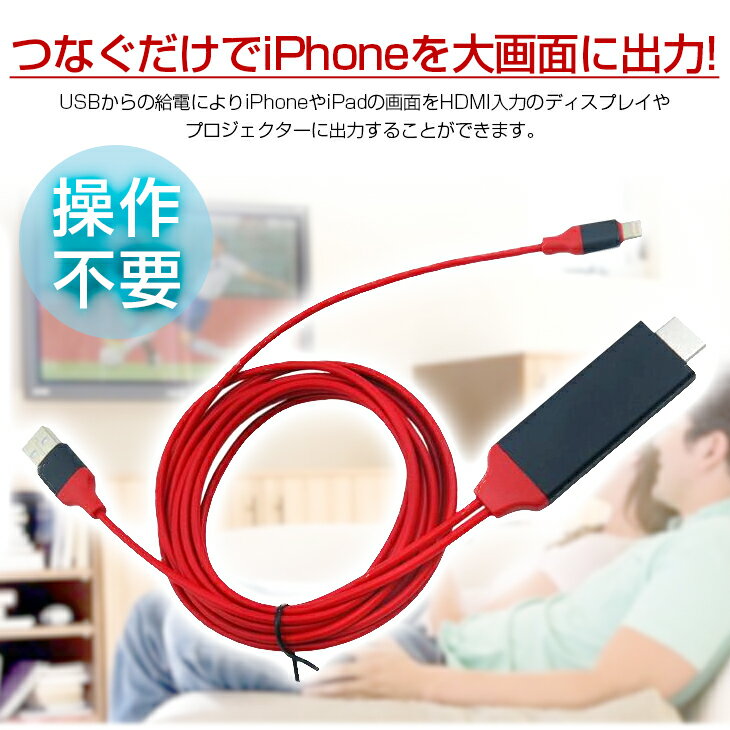 設定不要!このケーブルでつなぐだけで、ライトニング出力のiPhone・iPad各種の画面を、HDMI入力のディスプレイやプロジェクターで視聴できます。